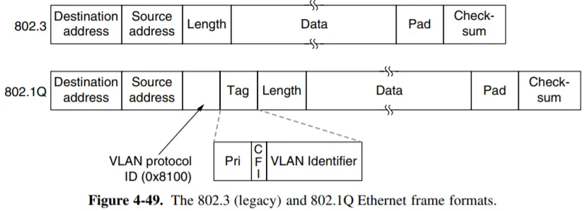 - 当一个“VLAN 感知交换机”(智能交换机)需要连接一个“VLAN 不感知交换机”(傻瓜交换机)时,智能交换机那一侧的连接端口必须被配置为 Access Mode。这样它才能把802.1Q帧的额外部分去除