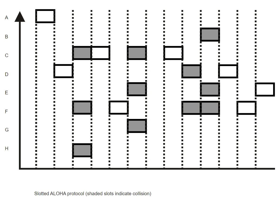 - 在这种优化了的协议中,时间被分成了离散的 slot,用户只能在每个 slot 的开始时刻才能发送帧。每次传输帧的用时必须小于或等于一个 slot 的长度。