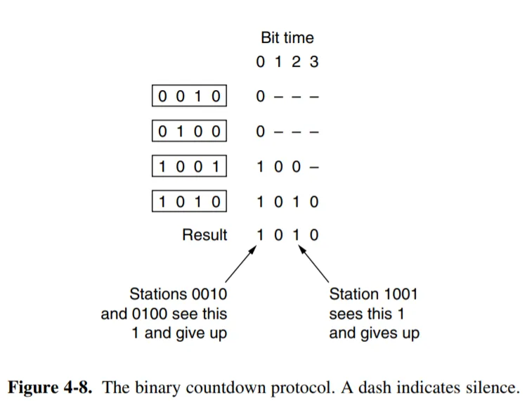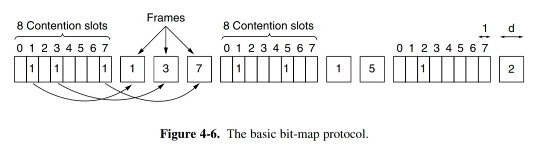 基本位图协议(Basic Bit-map Protocol),这种在发送数据之前先广播发送意愿的协议叫做 预留协议(reservation protocol)