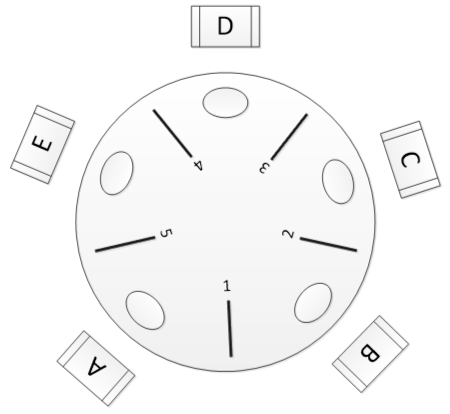 灾难发生了: 现在,所有 5 根筷子都被拿起来了,每个哲学家都只拿着一根筷子(他们各自的左手筷)。 然后,他们都开始等待他们右手边的筷子...